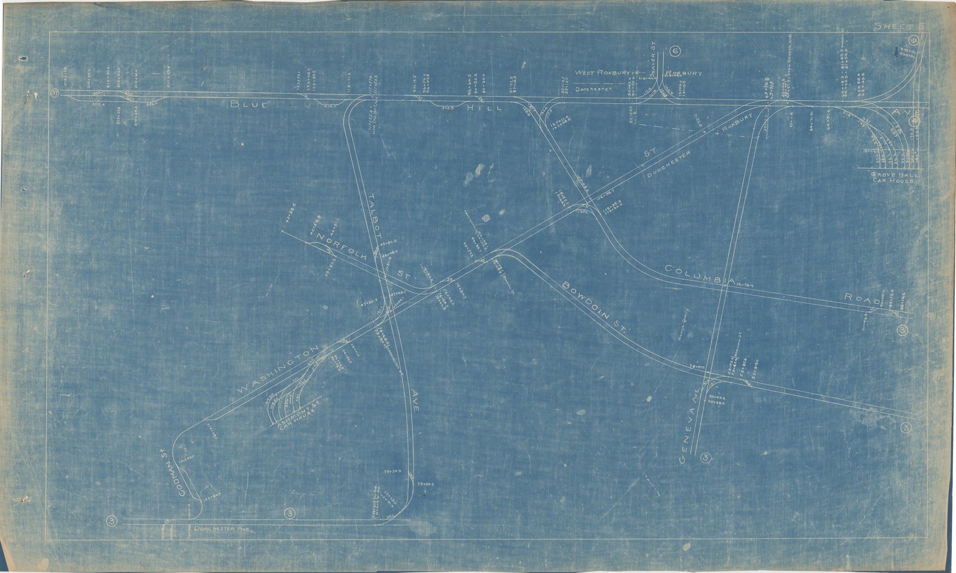 Boston Elevated Railway Co. Track Plans 1921 Plate 05: Dorchester and Roxbury