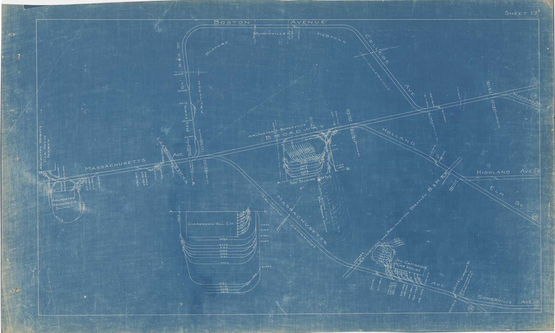 Boston Elevated Railway Co. Track Plans 1921 Plate 17: Arlington and Cambridge