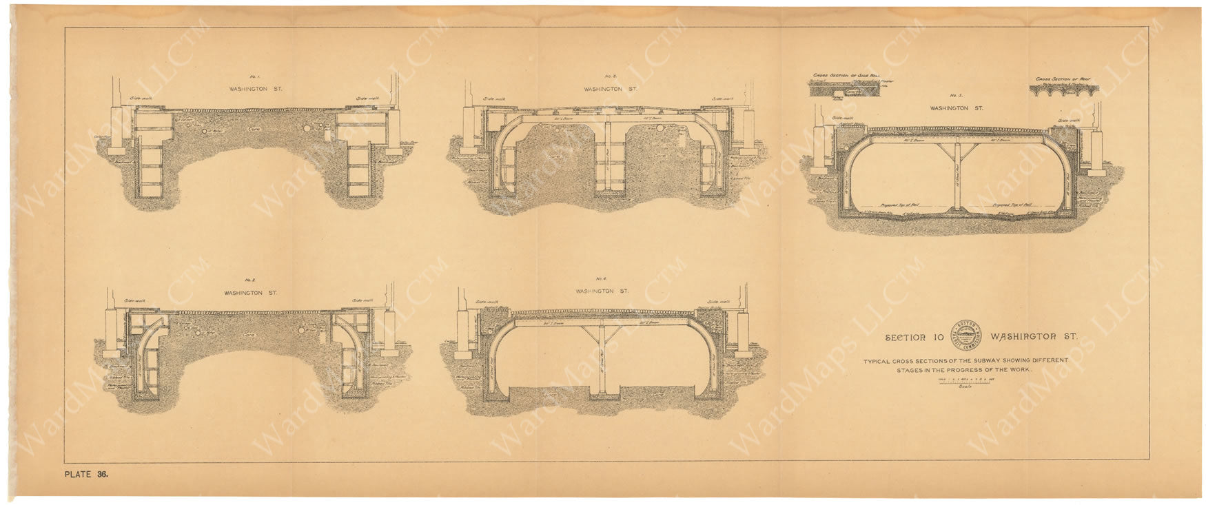 BTC Annual Report 03, 1897 Plate 036: Subway Progression of Work at Washington Street #2